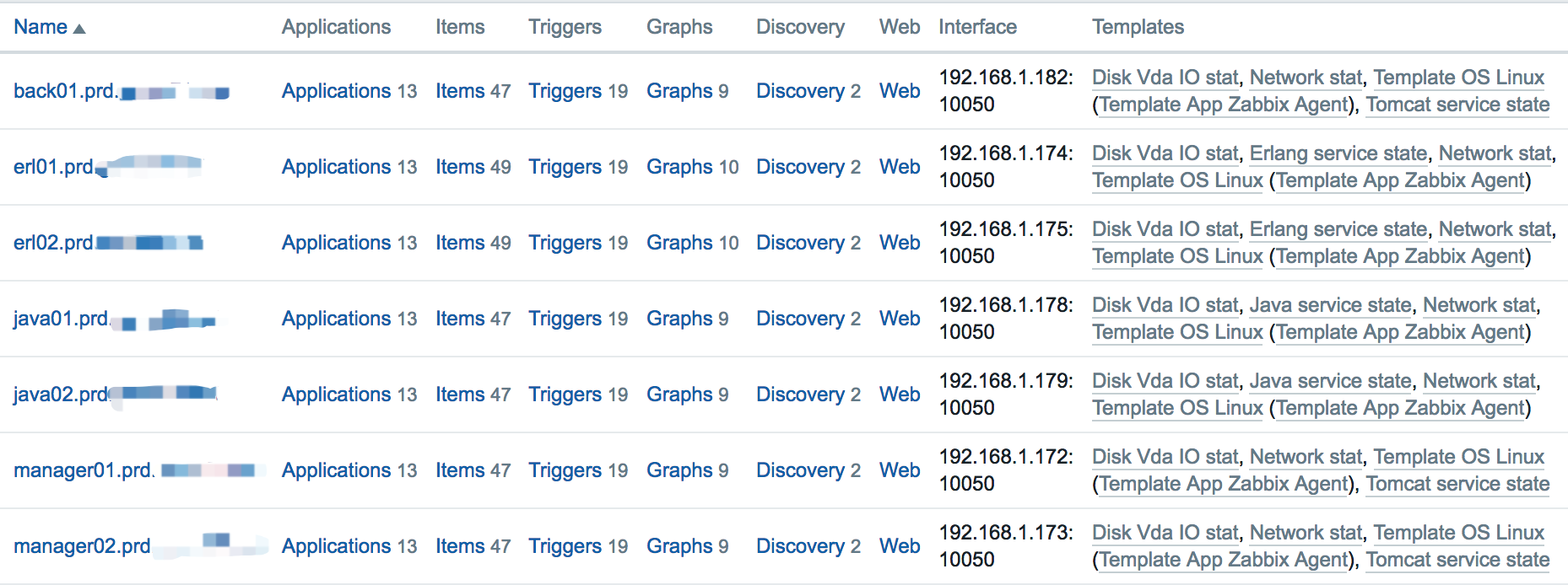 这里都是自动发现的,不同的应用服务器链接不同的模版。实现不同的服务监控。