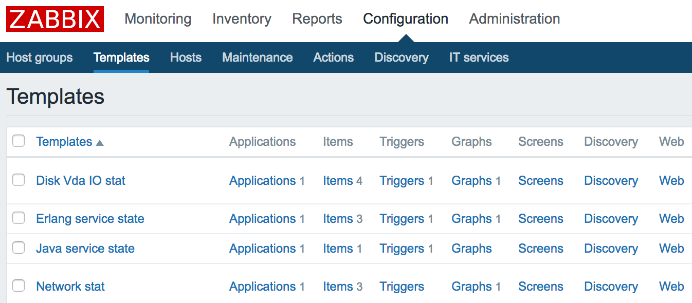 你有什么服务,就配置好什么模版。比如 Nginx,你就需要监控 Nginx 的进程,可能还需要监控某个页面的访问情况以保证服务确实可用。